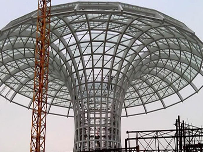 二、球形网架结构因其结构新颖,受力合理,自重轻、用钢量低等优点。如大型体育场馆球形麻城螺栓球网架、公共场馆球形网架、电厂麻城螺栓球网架、水泥工业球形网架、仓储物流球形网架、麻城干煤棚工业球形网架、麻城收费站麻城加油站球形网架、展览中心、影剧院、商场、航站楼、候车厅、工厂麻城车间、仓库、电视塔等球形螺栓球节点网架。国内球形网架结构主要分为:麻城焊接球节点网架及螺栓球节点网架两种。螺栓球节点网架其构件工厂内加工量较大,现场安装便捷,适用于现场工期紧,麻城施工条件、用电量受制约,网架形状复杂、麻城杆件定位困难的异形结构。螺栓球节点球形网架系统基本由麻城杆件、螺栓球、支撑支座等组成。按照节点形式可分为交叉麻城桁架体系、四角锥体系、三角锥体系等。支撑方式多为固定支座支撑。对于大面积、大跨度及有特殊受力或伸缩要求的网架结构可采用橡胶支座、滑移支座、球铰支座等支撑形式,以满足结构自身的受力稳定、均衡,便于内力释放等设计要求。